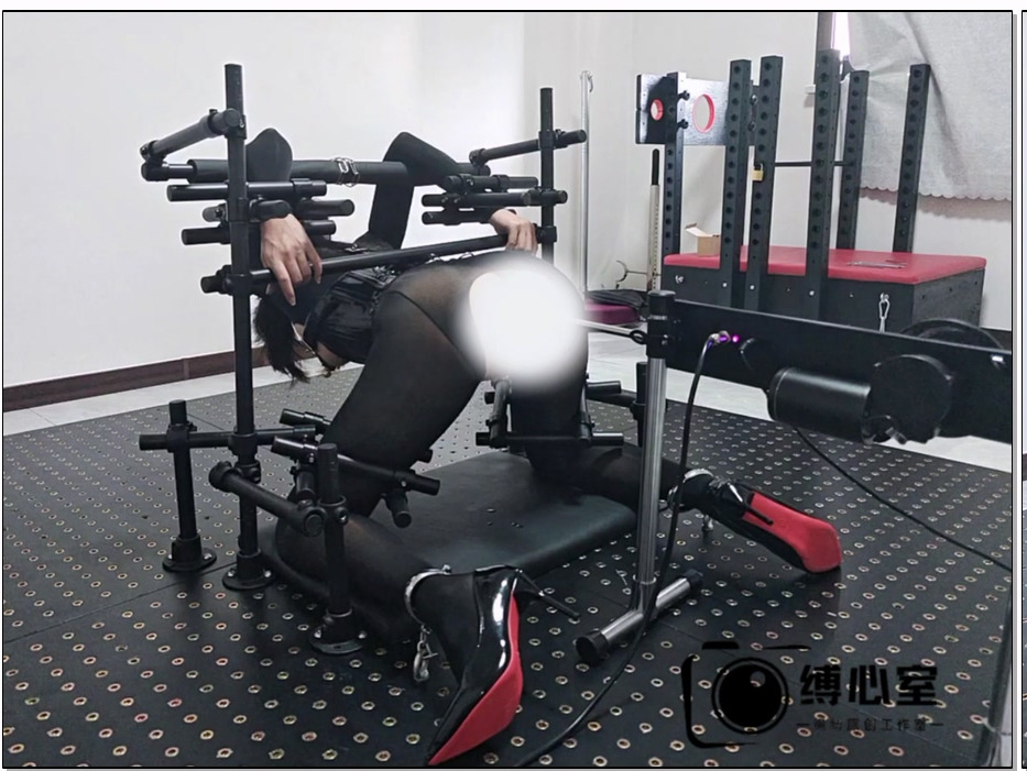 缚心室 油光黑丝女特工被俘记!大型拘束架伺候,修长美腿完美身材,炮机+AV棒折磨